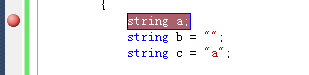 设置断点:在如下图中的红色圆点处设置断点,红色圆点表示已经在这行设置断点。快捷键F9。
