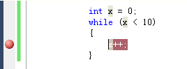 现在我再运行这个程序按F5达到条件断点,只有当x等于5时,程序运行才会被中断。对于其它条件下的x值,断点将被跳过。