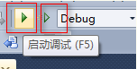 启动调试:按F5或者点击左边红框中的按钮。右边框是开始执行(不调试)Ctrl+F5。