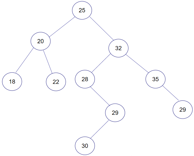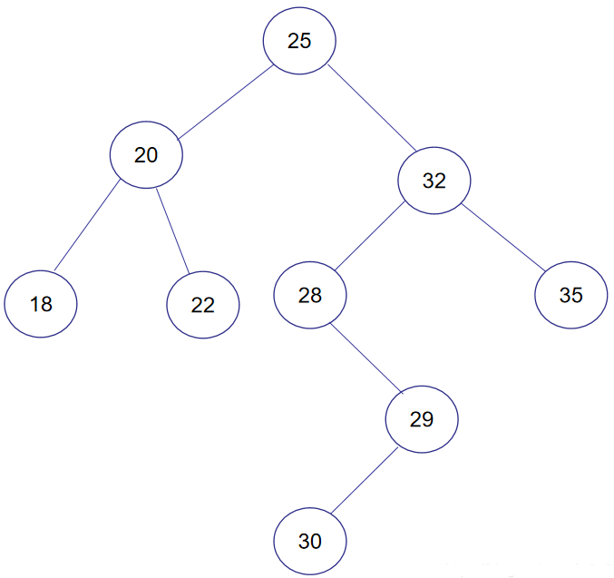 图二,节点25的左子树高度是3,而右子树高度是5,高度差已经超过1;对于节点32而言,左子树高度是3,右子树高度是1,高度差已经超出1,所以该树不是平衡二叉树。