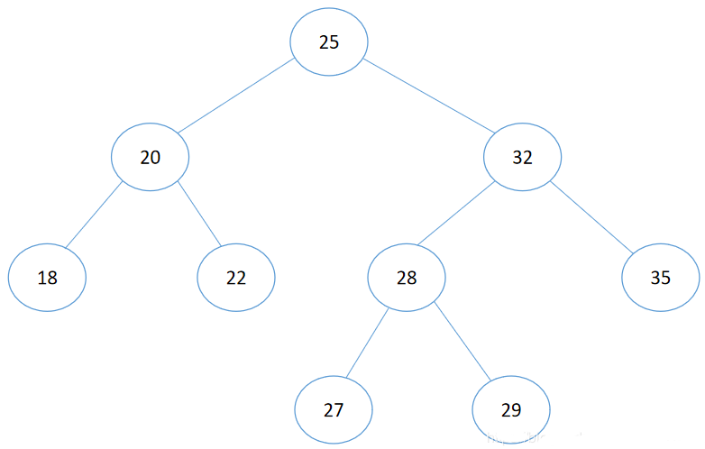 以25为基础进行进行右旋后结果如下,可以看出,该树处于平衡状态。