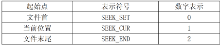 “位移量”表示移动的字节数,要求位移量是 long 型数据,以便在文件长度大于 64KB 时不会出错。当用常量表示位移量时,要求加后缀“L”。 “起始点”表示从何处开始计算位移量,规定的起始点有三种:文件首,当前位置和文件尾。