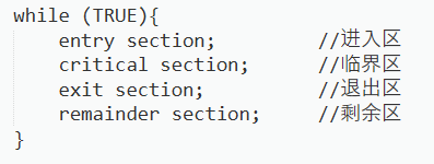 为了保证临界资源的正确使用,我们可以把临界资源的访问过程分成4部分。这4部分都属于要访问临界资源的进程,是进程中的一部分代码。