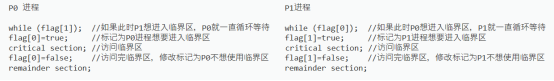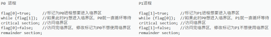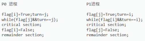 为了防止两个进程为进入临界区而无限期等待,每个进程在设置自己的标志后再设置turn标志,然后检测另一个进程的标志和turn标志。这时,再同时检测另一个 进程状态标志和不允许进入标志;以便保证两个进程同时要求进入临界区时,只允许一个进程进入临界区。