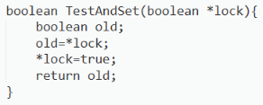 这条指令可以看作为一个函数过程,其执行过程是不可分割的,即是一条原语。其中,lock有两种状态:当*lock=FALSE时,表示该资源空闲;当*lock=TRUE时,表示该资源正在被使用。