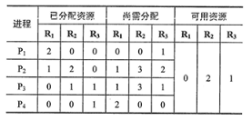 3. 【2011统考真题】某时刻进程的资源使用情况见下表,此时的安全序列是( )。