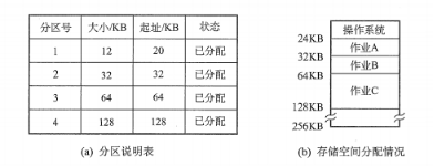 通常将分区按其大小进行排队,并为之建立一张分区使用表,其中各表项包括每个分区的起始地址、大小及状态(是否已分配)。当有用户程序要装入时,便检索该表,以找到合适的分区给予分配并将其状态置为“已分配”;未找到合适分区时,则拒绝为该用户程序分配内存。