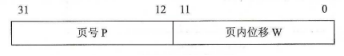 包含两部分,前一部分为页号P,后一部分为页内偏移量W。地址长度为32位,其中0~11位为页内地址,即每页大小为4KB;12-31位为页号,地址空间最多允许有1M=220页。要注意到 地址结构决定了虚拟内存空间有多大。