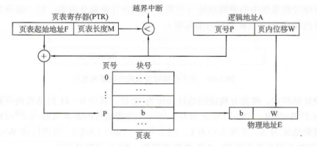 ②比较页号P 和页表长度M ,若P≥M,则产生越界中断,否则转到③接着执行