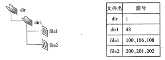 1) 假定目录树如下图所示,各文件占用的簇号及顺序如下表所示, 其中dir,dir1是目录, file1, file2是用户文件。请给出所有目录文件的内容。