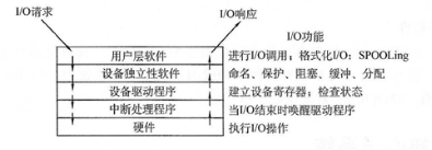 I/O软件设计的基本思想是将设备管理软件组织成一种层次结构。为了使复杂的I/O软件具有清晰的结构,良好的可移植性和适应性,在I/O软件中普遍釆用了层次式结构,将系统输入/输出功能组织成一系列的层次,每一层都利用其下层提供的服务,完成输入/输出功能中的某些子功能,并屏蔽这些功能实现的细节,向高层提供服务。