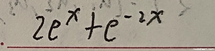 学生作答为 $2e^{x}+e^{-2x}$,标准答案为 $e^{-2 x}+2 e^{x}$。两者在数学上是完全等价的,只是项的排列顺序不同。根据题目要求,思路正确且答案等价的不扣分。因此该答案得4分。