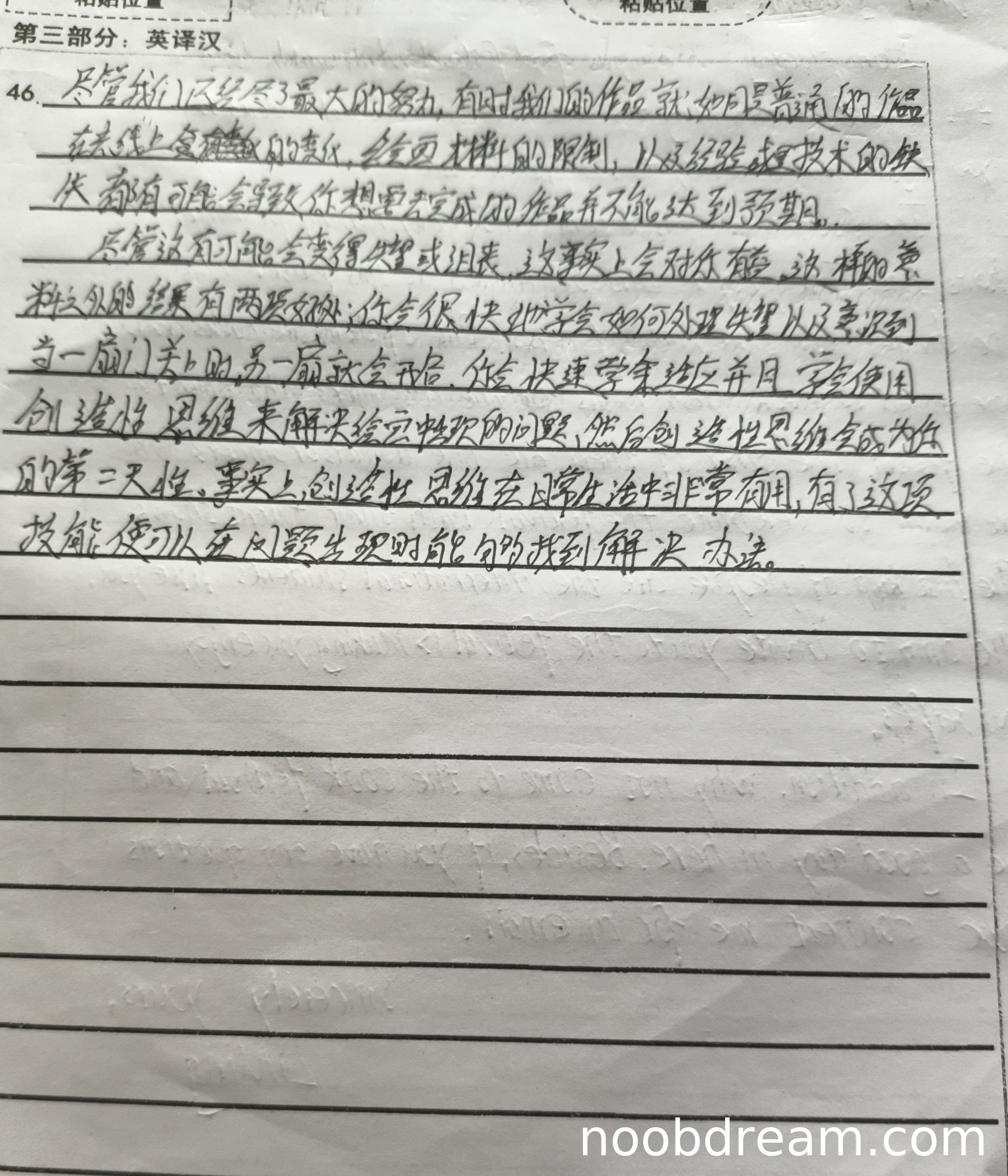 4. "经验、技术的缺失"准确对应"lack of experience and technique"(+1分)