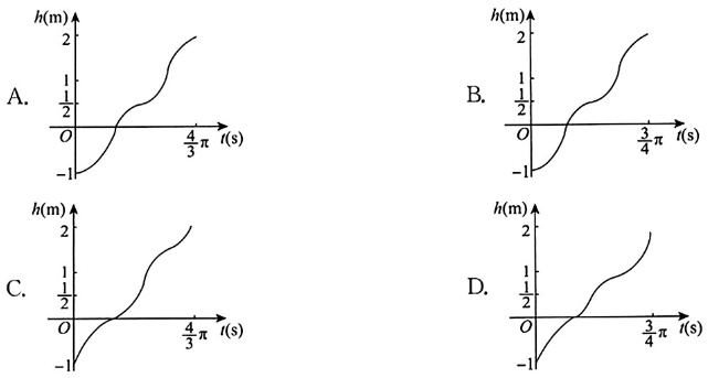 一容器内侧由图中曲线绕$y$轴旋转一周而成,现以$3m^{3}/s$的速率向该容器内注水,直至注满为止,则水面高度$h(t)$的图形为