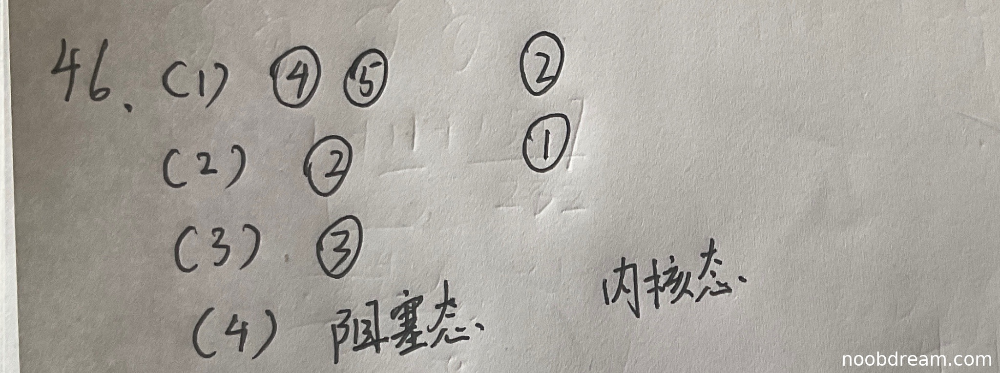 学生答案:阻塞态 内核态