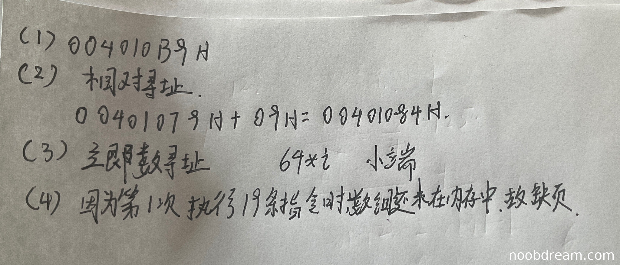 学生答案正确给出第20条指令的虚拟地址为004010B9H,与标准答案一致。得3分。