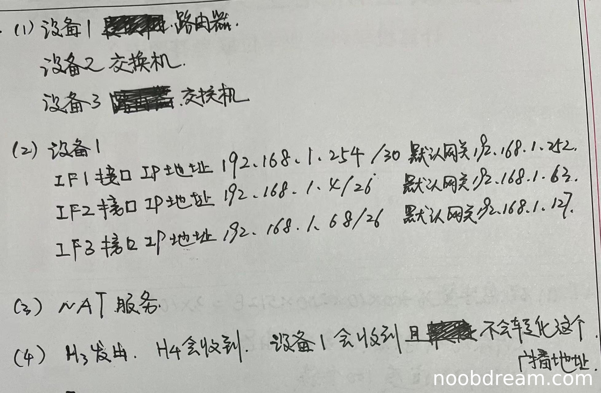 - 虽然识别出了设备1需要配置IP地址这一关键点,但具体配置完全错误,扣3分