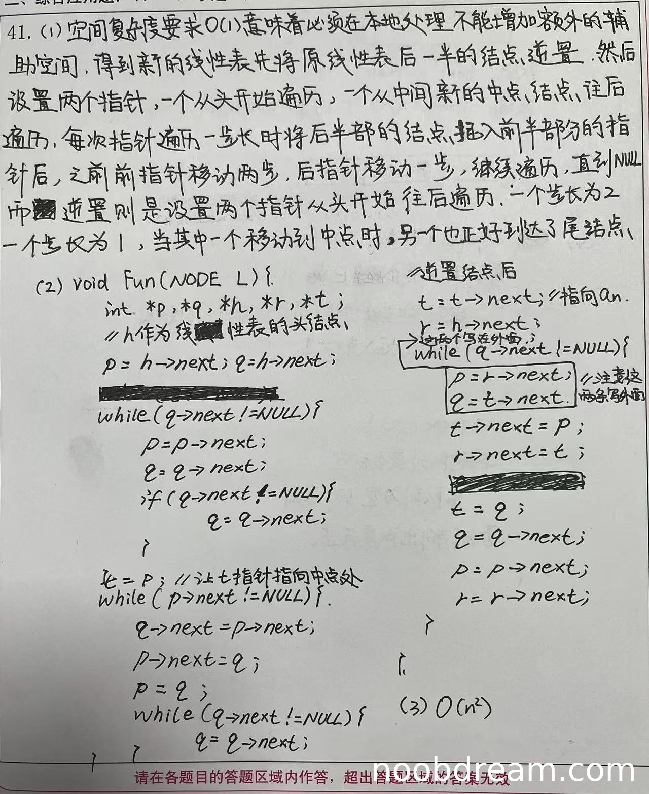 理由:学生的基本设计思想正确,提到了找到中点、逆置后半段和合并两个链表这三个关键步骤。但是描述中存在一些不准确之处: