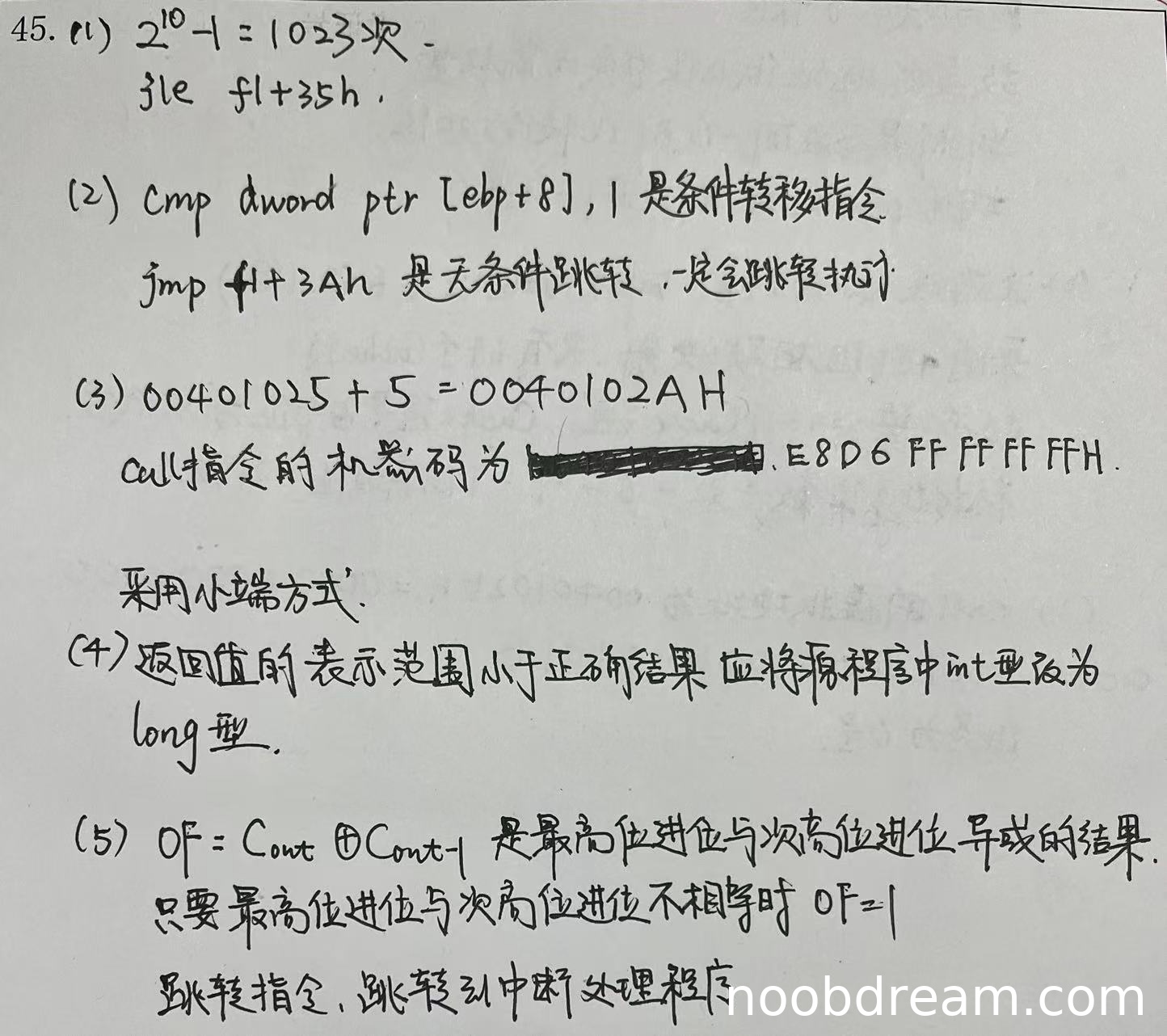 第二问:学生没有给出偏移量的计算过程,只写了call指令的机器码,没有计算过程,扣1分。