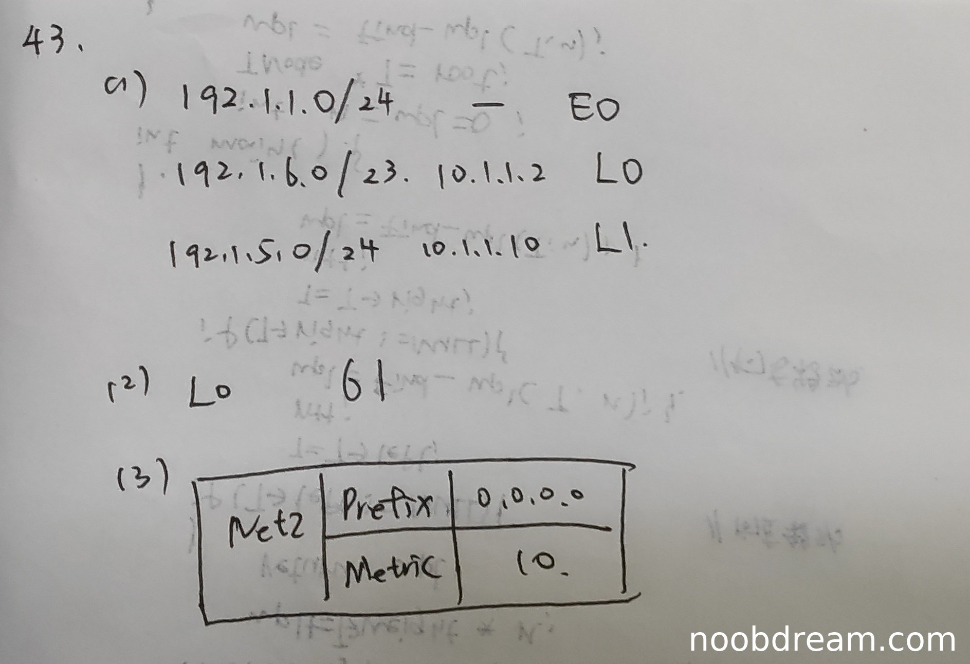 (3) 若R1增加一条Metric为10的链路连接Internet,则题42表中R1的LSI需要增加哪些信息?(1分)