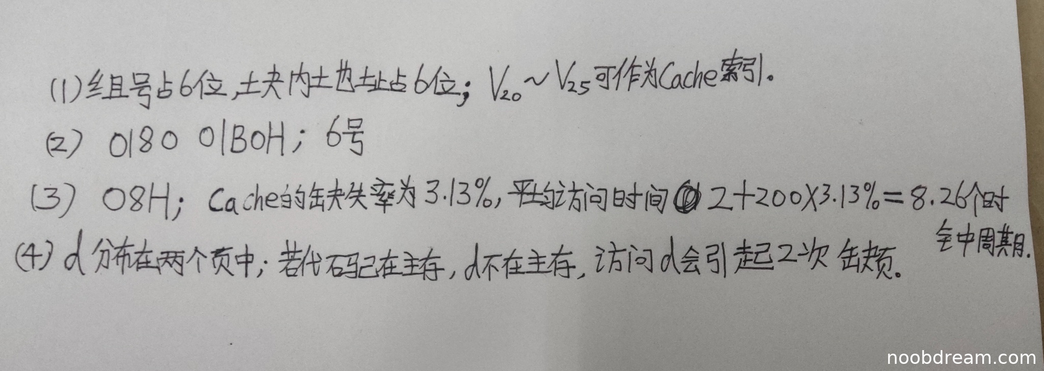 学生正确计算出d[100]的VA为0180 01B0H,得2分;正确得出Cache组号为6,得2分。本小题得4分。