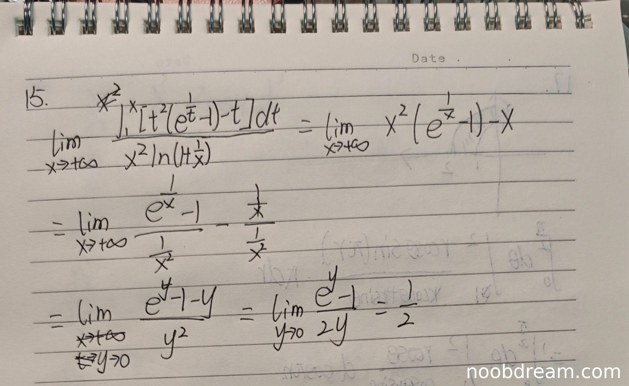 学生使用了洛必达法则和变量替换的方法求解该极限,思路正确。具体步骤为:
