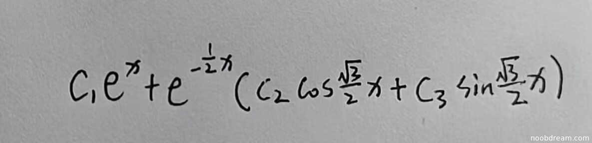 学生给出的答案是:\(C_{1}e^{x}+e^{-\frac{1}{2}x}(C_{2}\cos\frac{\sqrt{3}}{2}x + C_{3}\sin\frac{\sqrt{3}}{2}x)\)。该答案与标准答案 \(y=c_{1} e^{x}+c_{2} x e^{x}+c_{3} x^{2} e^{x}\) 在形式上不一致,但它是微分方程 \(y^{\prime \prime \prime}-y=0\) 的另一种正确通解形式。根据打分要求第3条“思路正确不扣分”,学生答案虽然与标准答案不同,但思路正确且数学上等价,因此不应扣分。此外,禁止扣分规则中未涉及此类情况,且答案中无逻辑错误。因此,本题得分为5分。