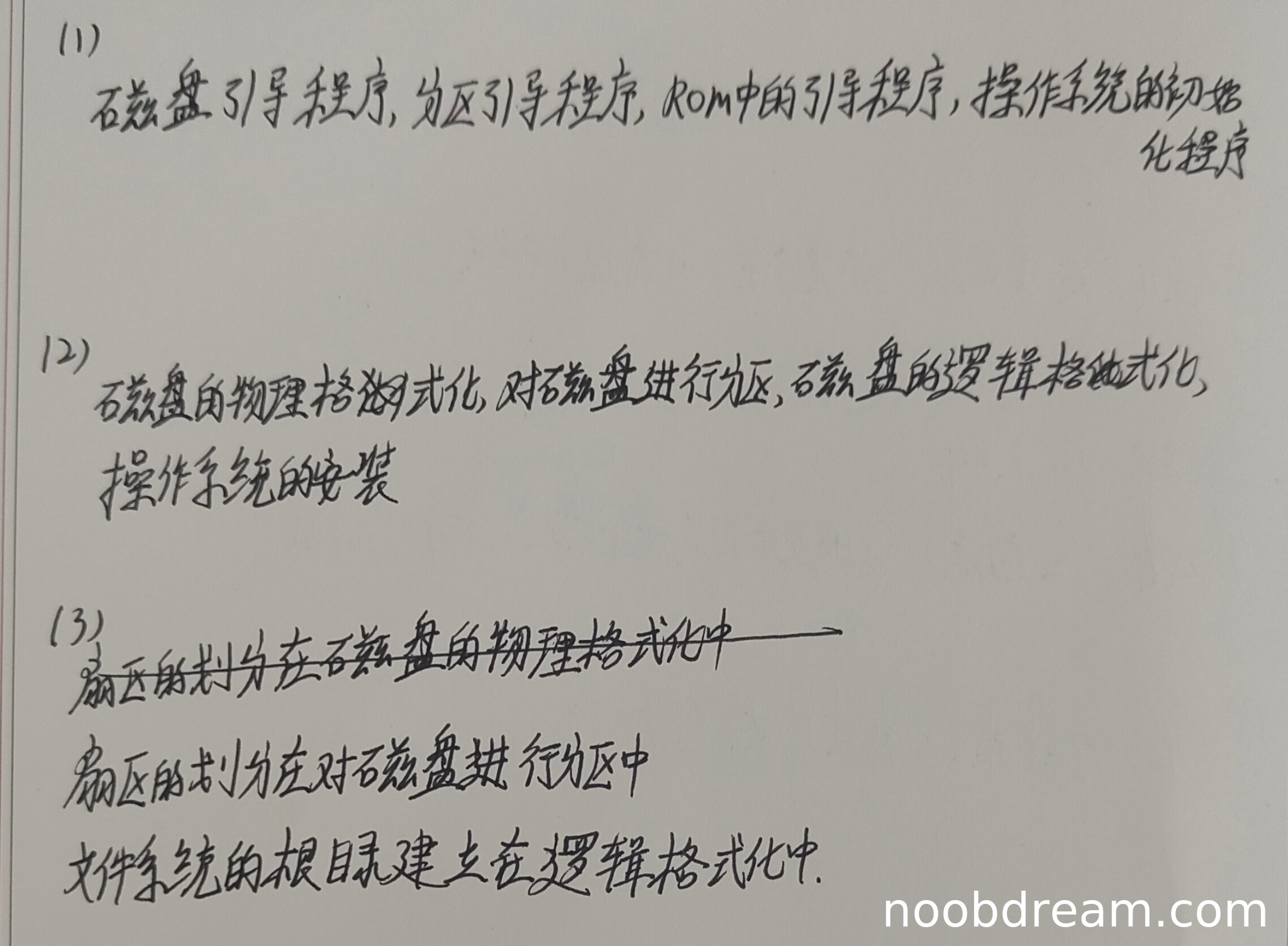 学生第一次识别结果顺序为:磁盘引导程序、分区引导程序、ROM中的引导程序、操作系统的初始化程序;第二次识别结果顺序为:磁盘引导程序、分区引导程序、ROM中的引导程序、操作系统的初始化程序。标准答案为:ROM中的引导程序、磁盘引导程序、分区引导程序、操作系统的初始化程序。学生答案中ROM中的引导程序位置错误,未放在第一步,属于逻辑错误。扣2分。