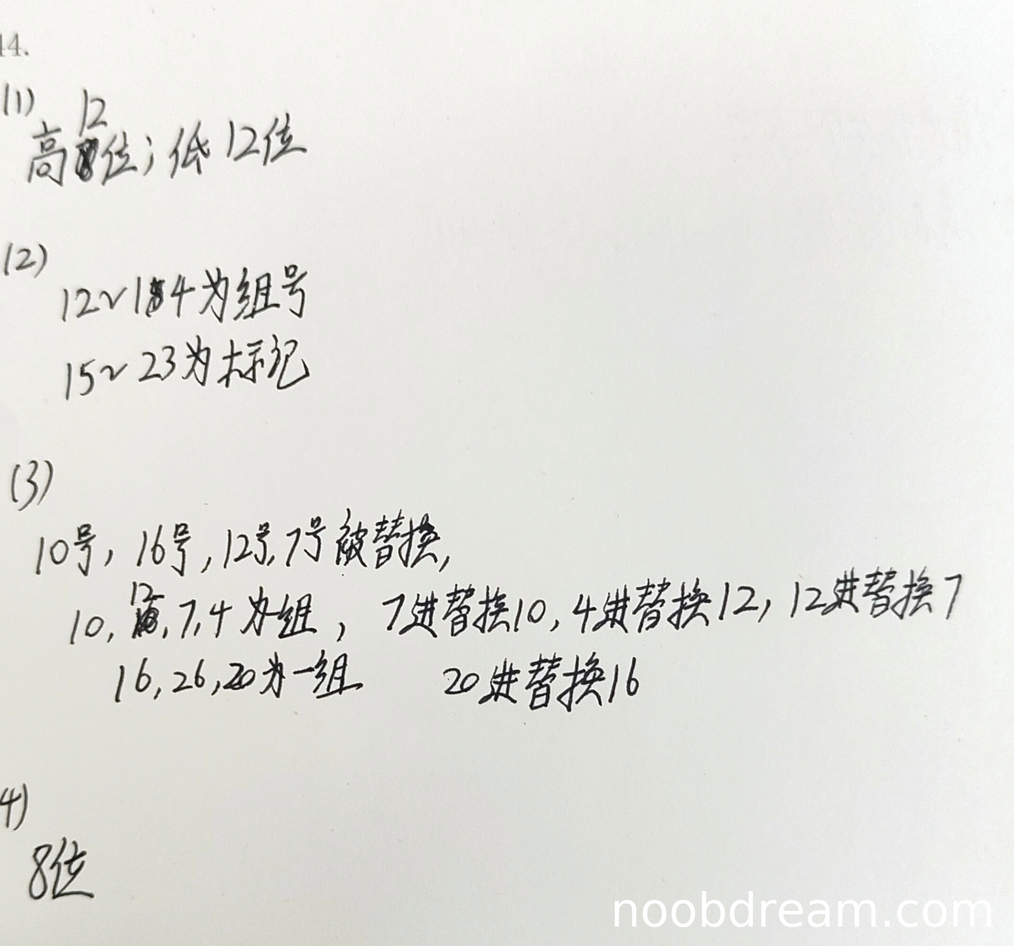学生第一次识别结果:12~14为组号,15~23为标记。标准答案中虚页号共18位,组号占低3位(即虚页号的第16-14位,或虚拟地址的第25-23位),标记占高15位(即虚页号的第18-16位,或虚拟地址的第29-26位)。学生给出的组号位置(12~14)和标记位置(15~23)与虚拟地址的位对应关系错误,逻辑错误,扣2分。