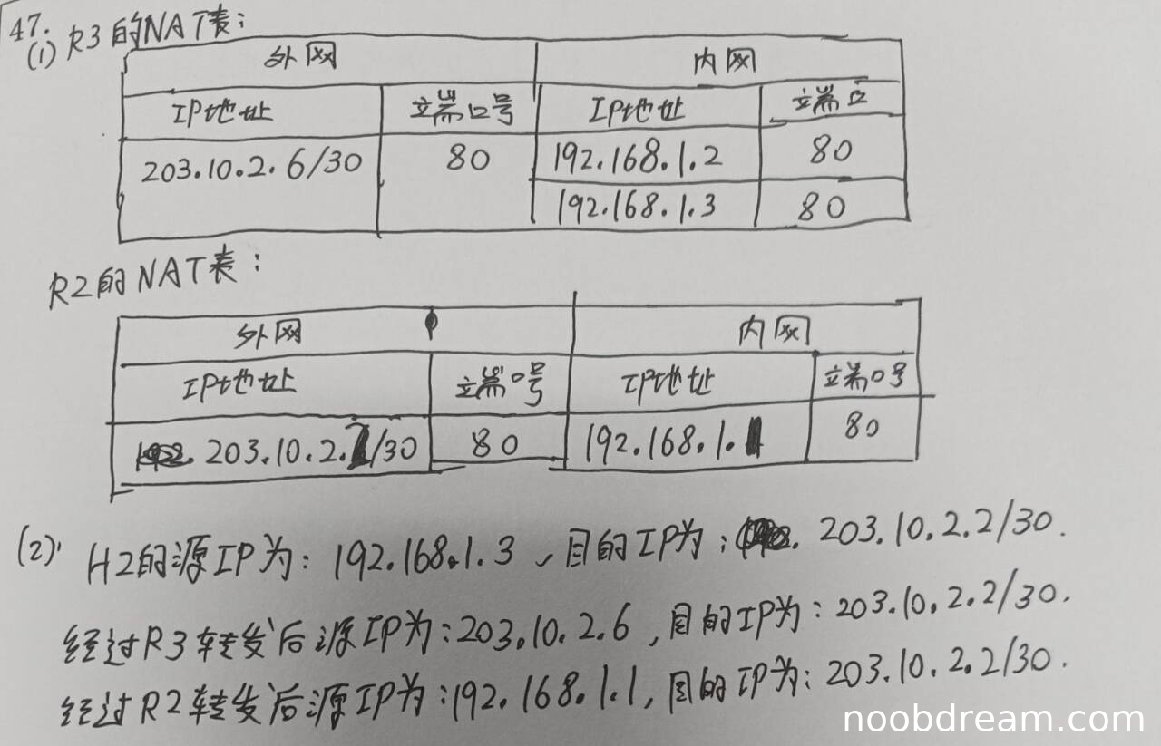 学生回答中提到了在R3和R2上配置NAT表,但存在以下问题: