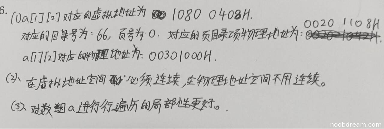 学生答案正确:虚拟地址空间必须连续,物理地址空间不用连续。与标准答案一致,得2分。