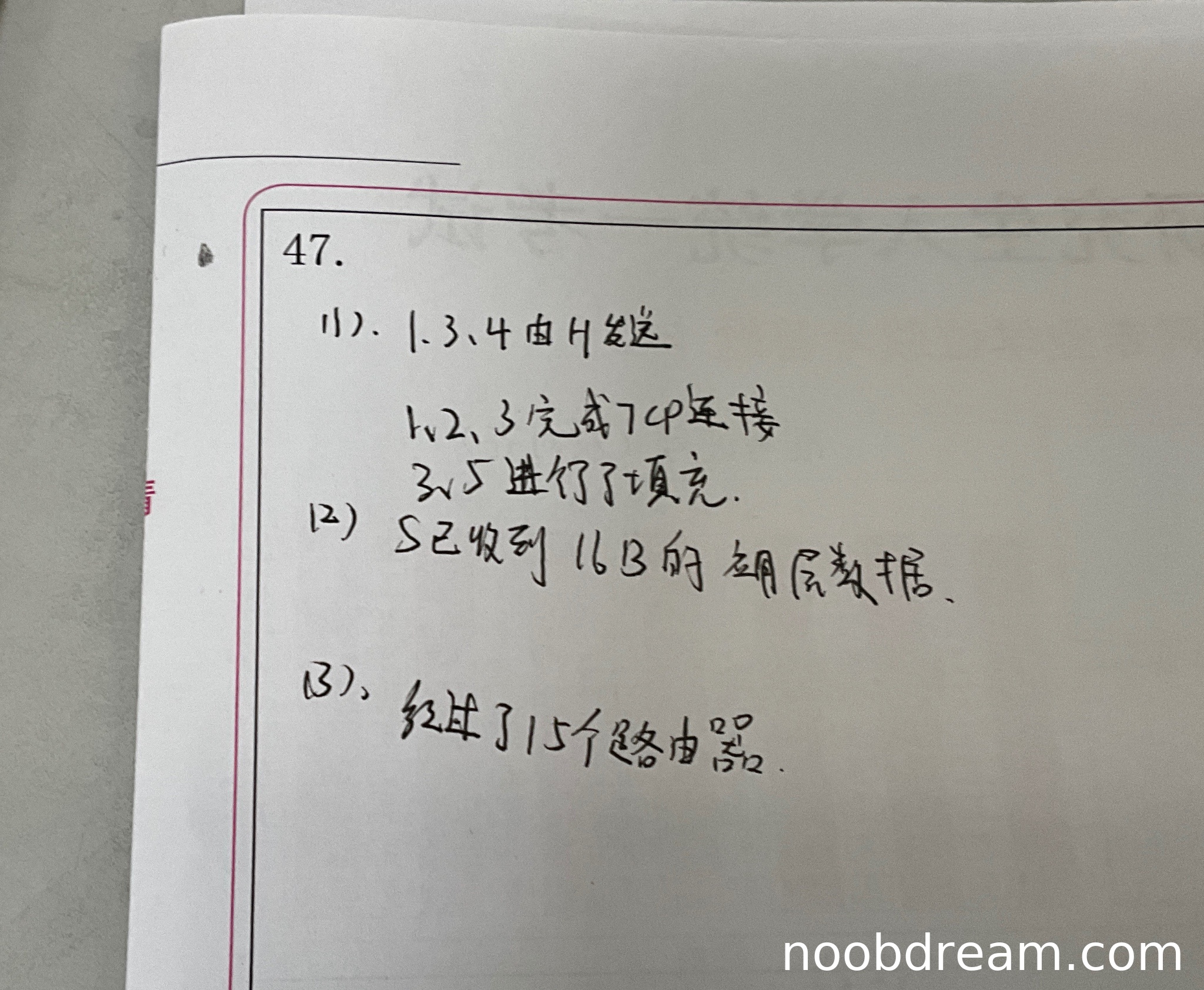 学生答案正确指出经过了15个路由器,与标准答案一致,得2分。