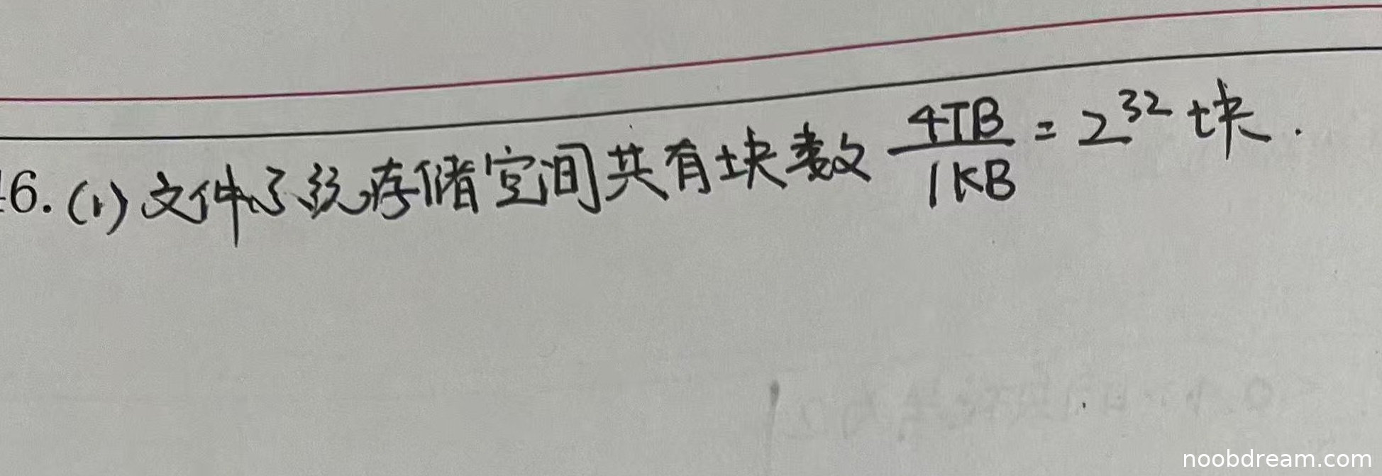学生只计算了文件系统的总块数(2^32块),但没有回答索引表项中块号最少占多少字节,也没有计算可支持的单个文件最大长度。因此,该问题只完成了部分计算,但未完成全部要求。根据标准答案,块号占4B和最大文件长度128KB各占2分,学生未给出这些关键结论,故得0分。