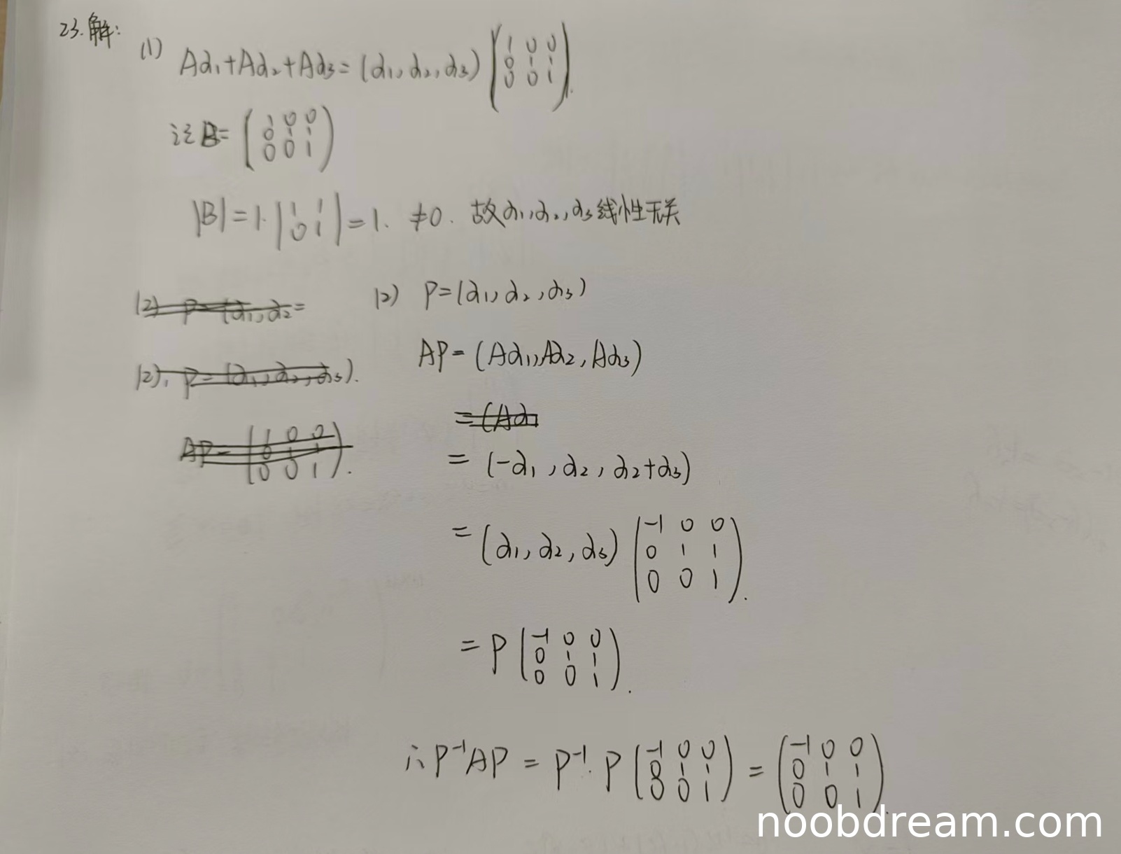 由于两次识别结果均未给出正确的线性无关性证明,且核心逻辑错误,因此本小题得0分。