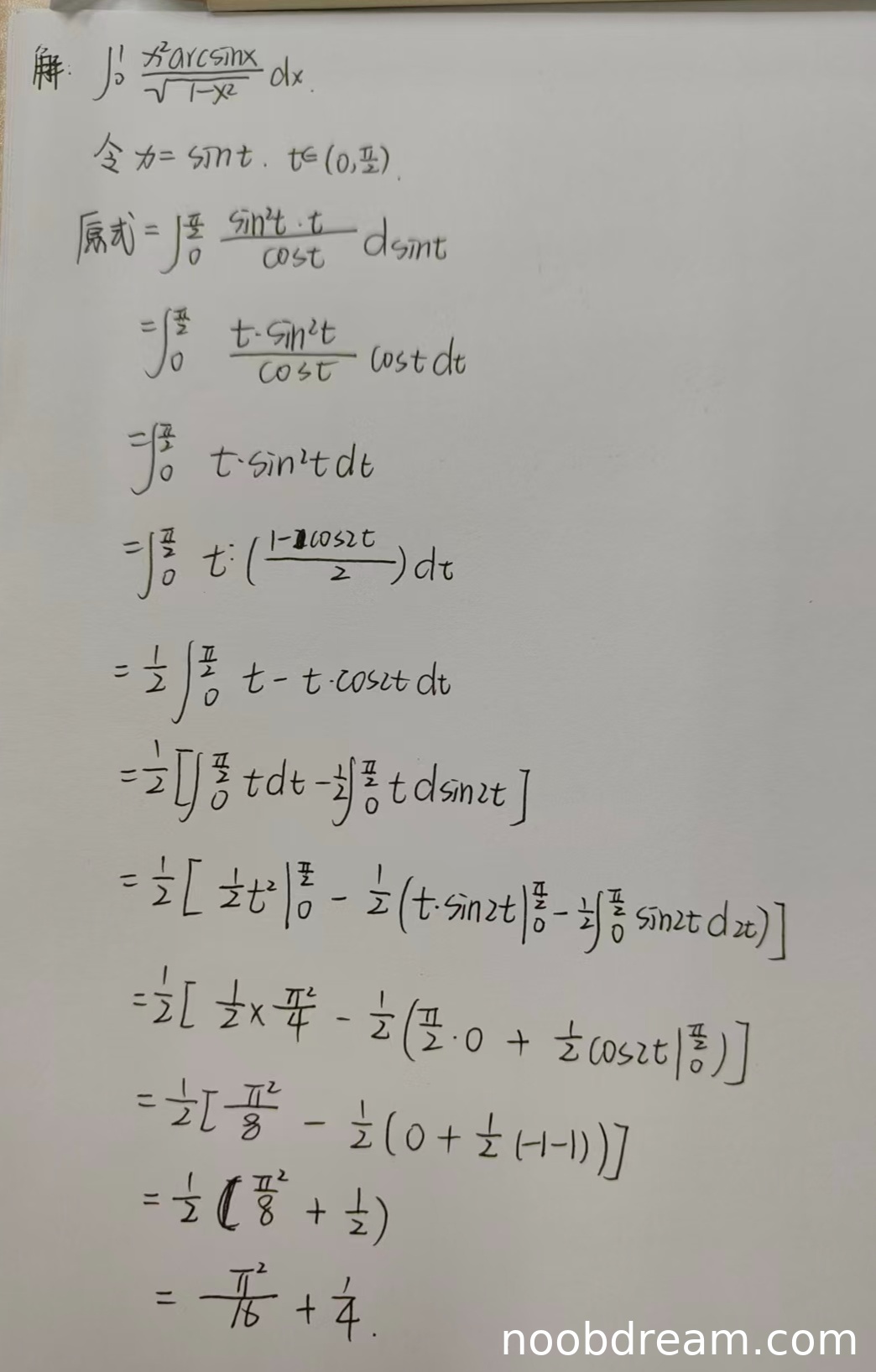 尽管第一次识别结果在书写上有一些不规范(如 \(d\sin t\) 的写法),但根据上下文可判断为误写,不影响核心逻辑。第二次识别结果步骤清晰完整。因此,本题得满分10分。