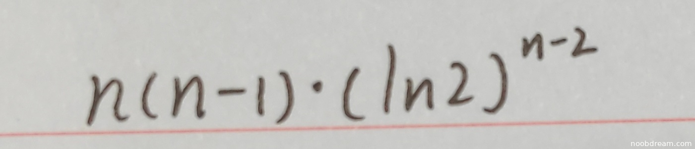 学生两次识别结果均为 \(n(n - 1)\cdot(\ln2)^{n - 2}\),与标准答案 \(n(n-1)(\ln 2)^{n-2}\) 完全一致。因此,该答案正确,得满分4分。
