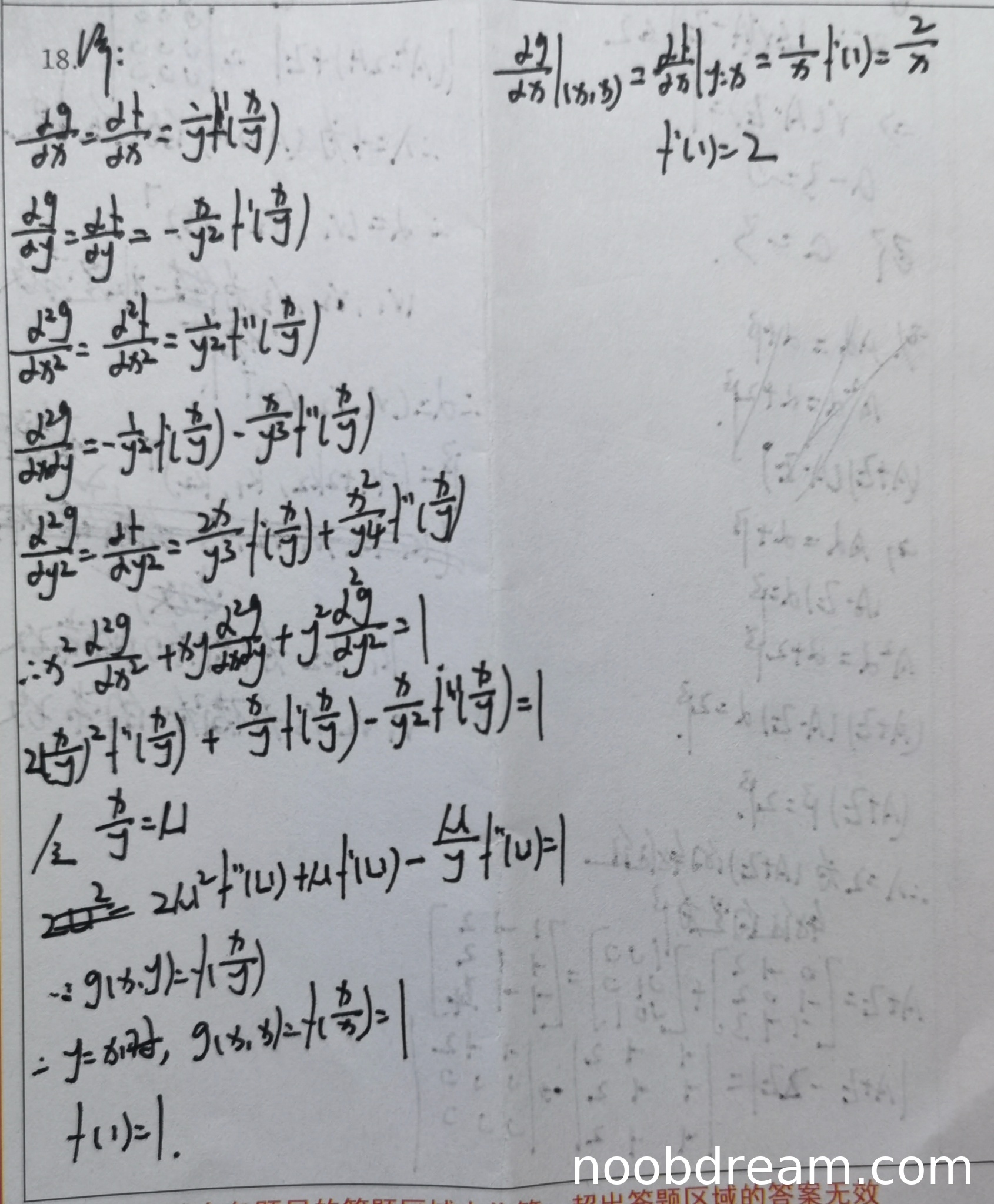 鉴于解答在核心步骤(建立正确的微分方程)上存在根本性错误,且未完成求解,故不能给予及格分数。考虑到学生正确计算了一阶和二阶偏导数的形式(尽管后续使用错误),以及部分识别可能存在的误差,酌情给予少量步骤分。