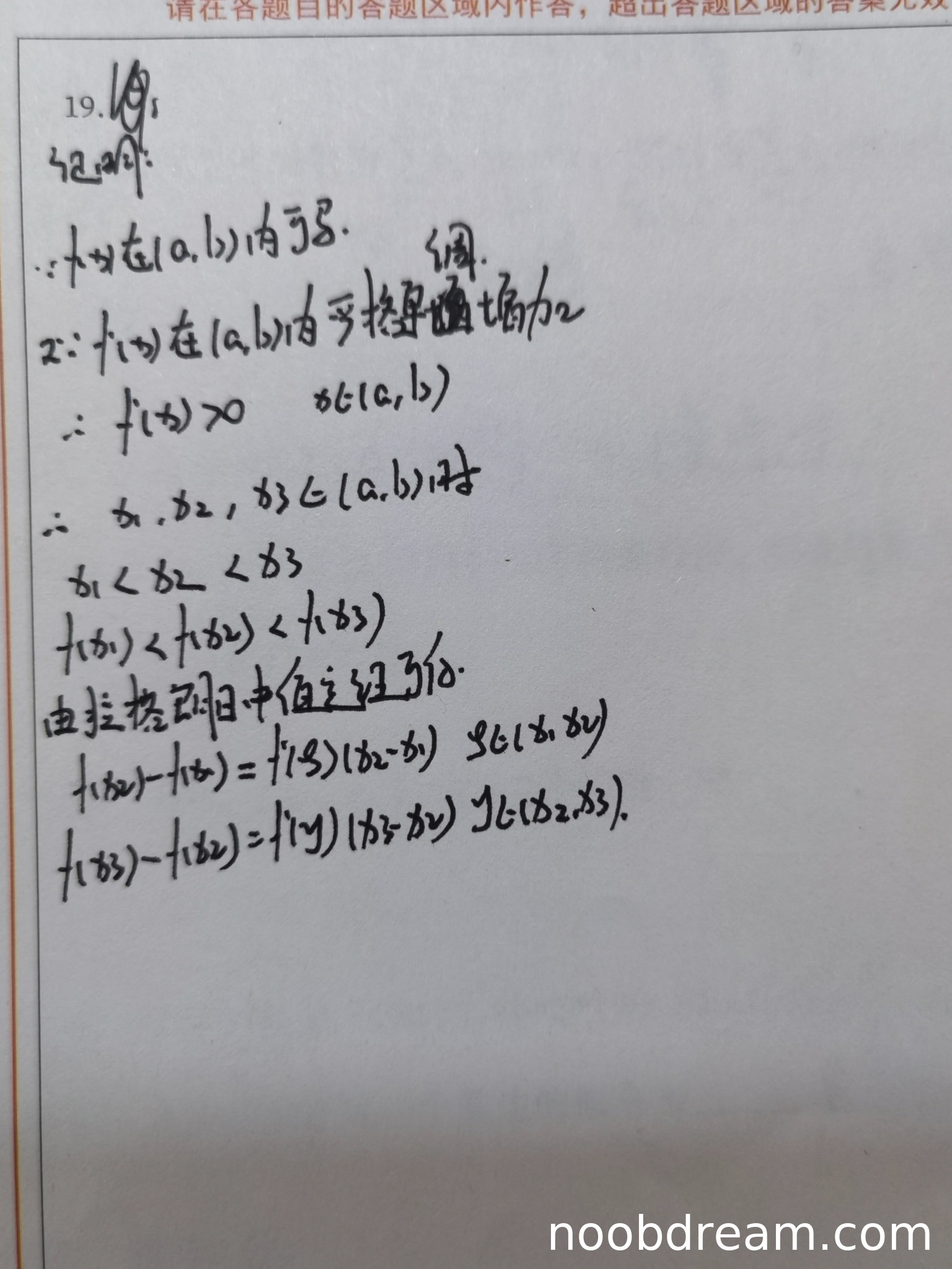 得分:2分(给予拉格朗日中值定理书写正确的部分分数)