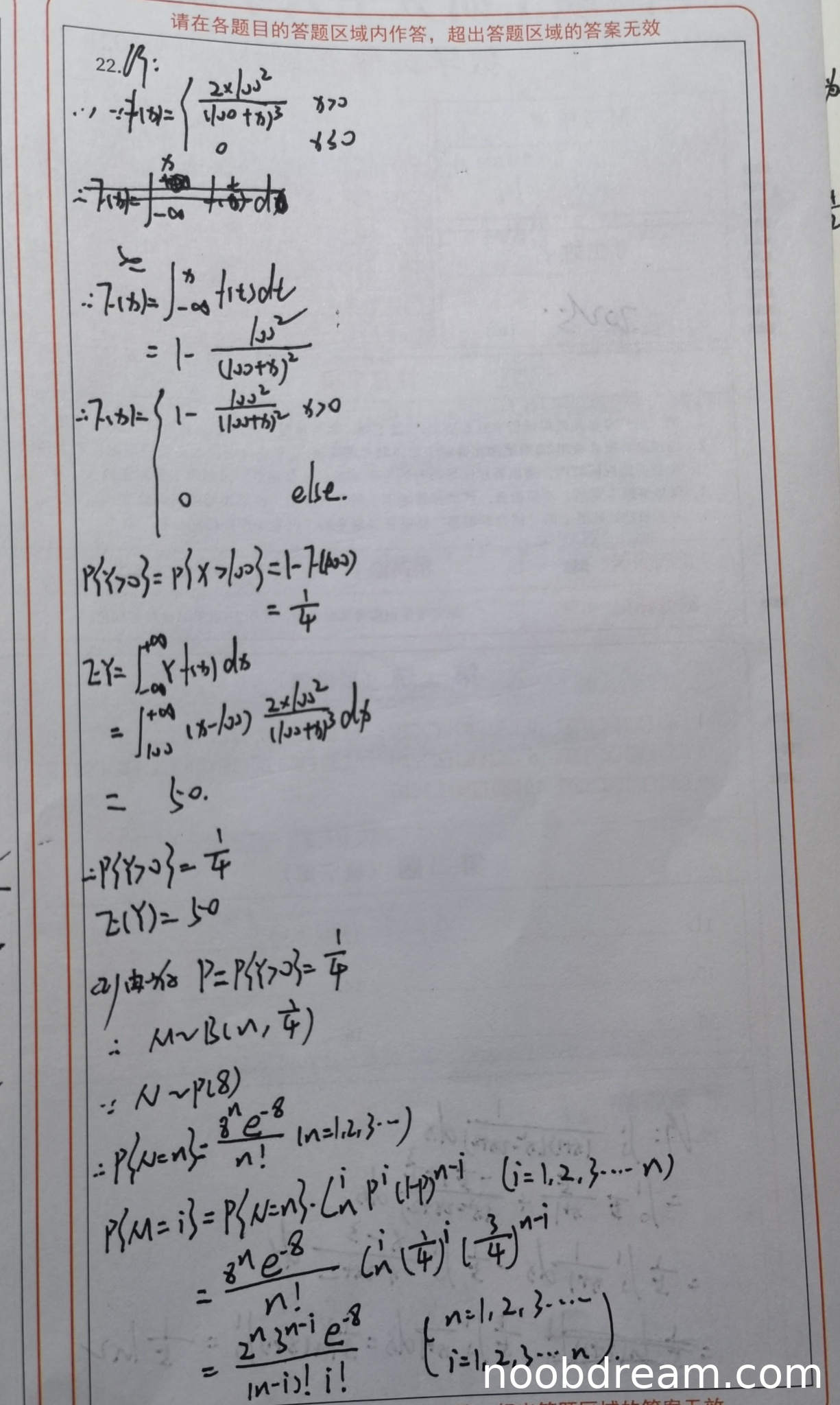 得分:2分(仅写出了条件分布和 \( N \) 的分布,但未正确推导出 \( M \) 的边际分布)。