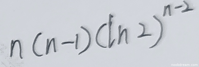 学生两次识别结果分别为“n(n - 1)(ln 2)^(n - 2)”和“$n(n - 1)(\ln 2)^{n - 2}$”。这两个结果与标准答案“n(n-1)(\ln 2)^{n-2}”在数学上完全一致。第一次识别结果省略了LaTeX格式,但表达式正确;第二次识别结果使用了LaTeX格式,同样正确。根据打分要求,只要其中一次识别正确即不扣分。因此,本题答案正确,得满分4分。