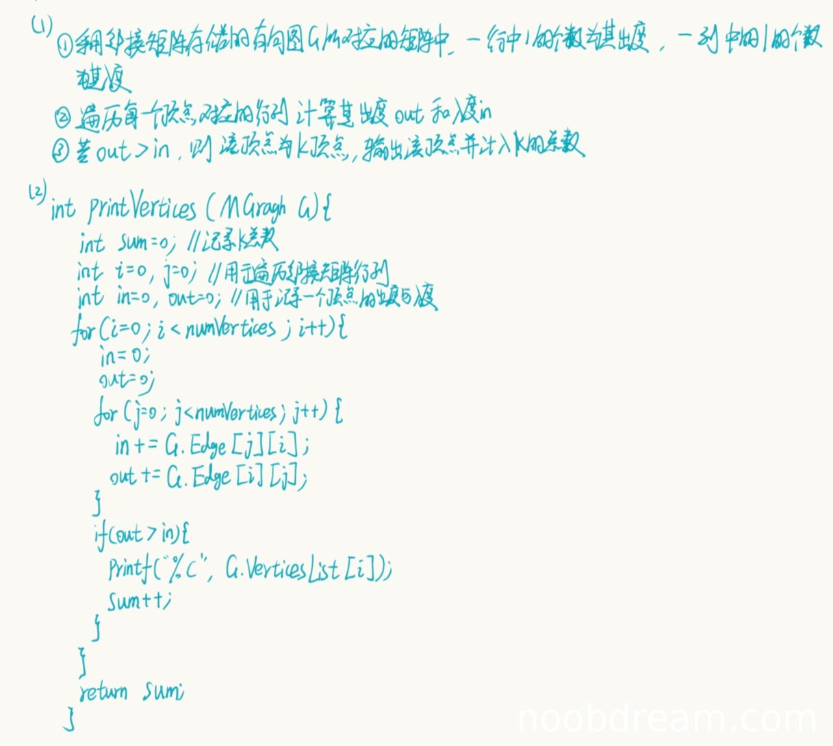 除此之外,算法核心部分(计算入度、出度,判断并输出)完全正确,且注释清晰。