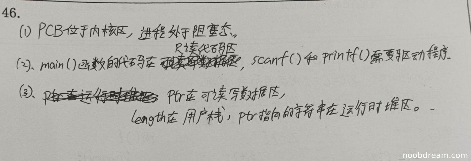 学生两次识别结果均正确回答了PCB位于内核区,执行scanf()时进程处于阻塞态。与标准答案完全一致。