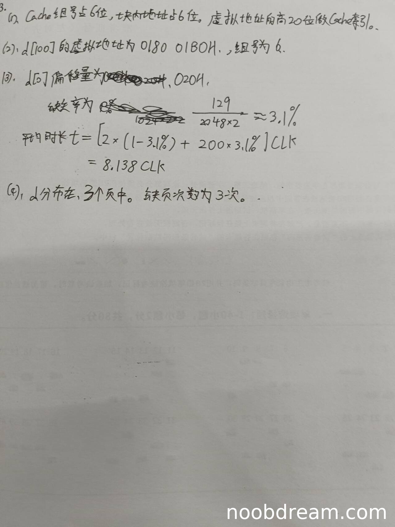 - 平均访问时间计算:公式正确,结果8.138周期与标准答案8.3周期接近,计算过程合理。