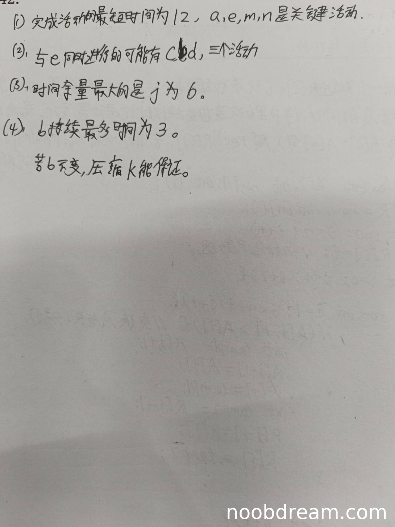 标准答案:b的持续时间最多是4,可以压缩活动k。