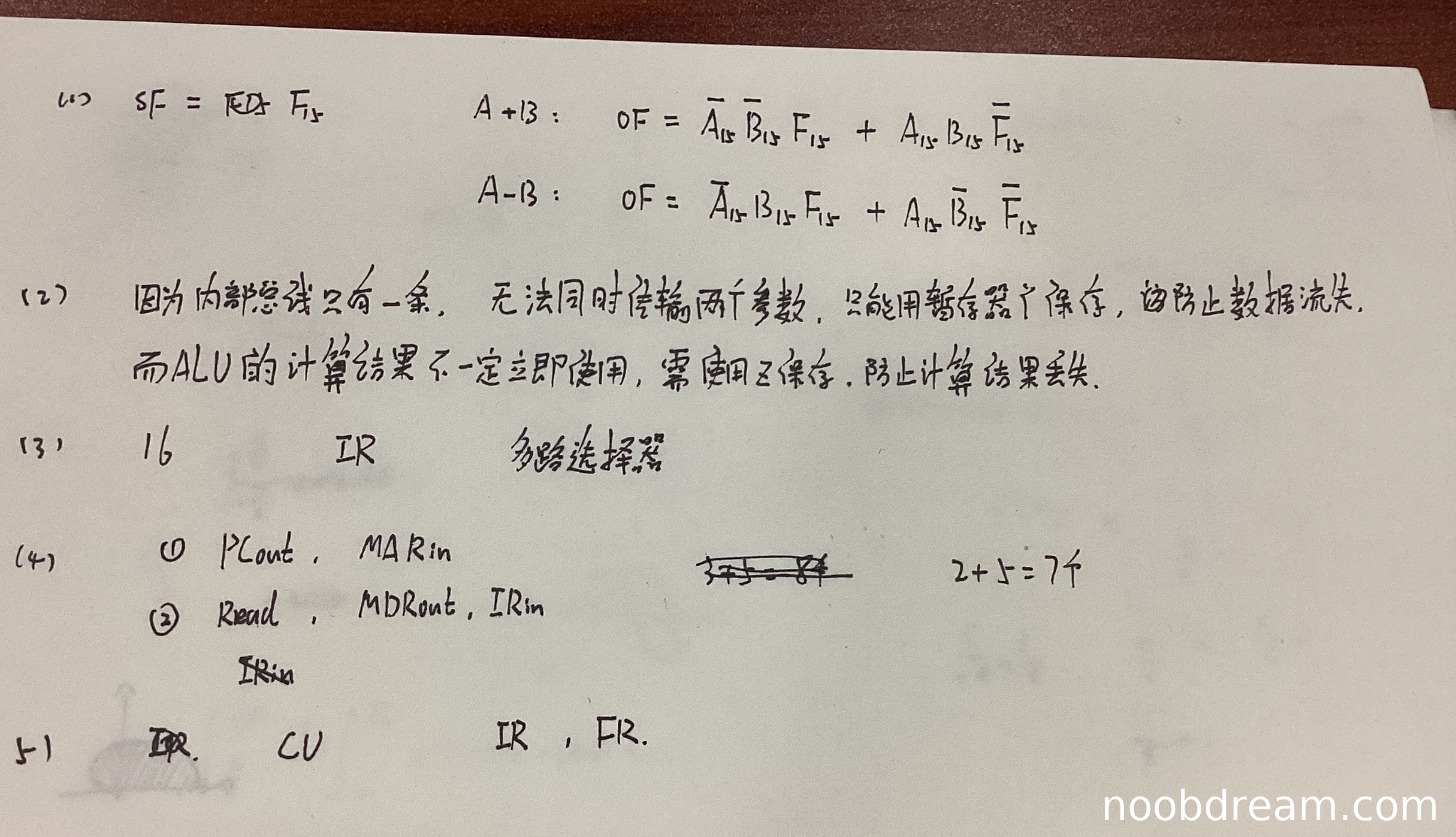 理由:第一次识别结果缺失,但第二次识别结果完全正确。符号标志SF和溢出标志OF的逻辑表达式与标准答案一致,且格式规范。