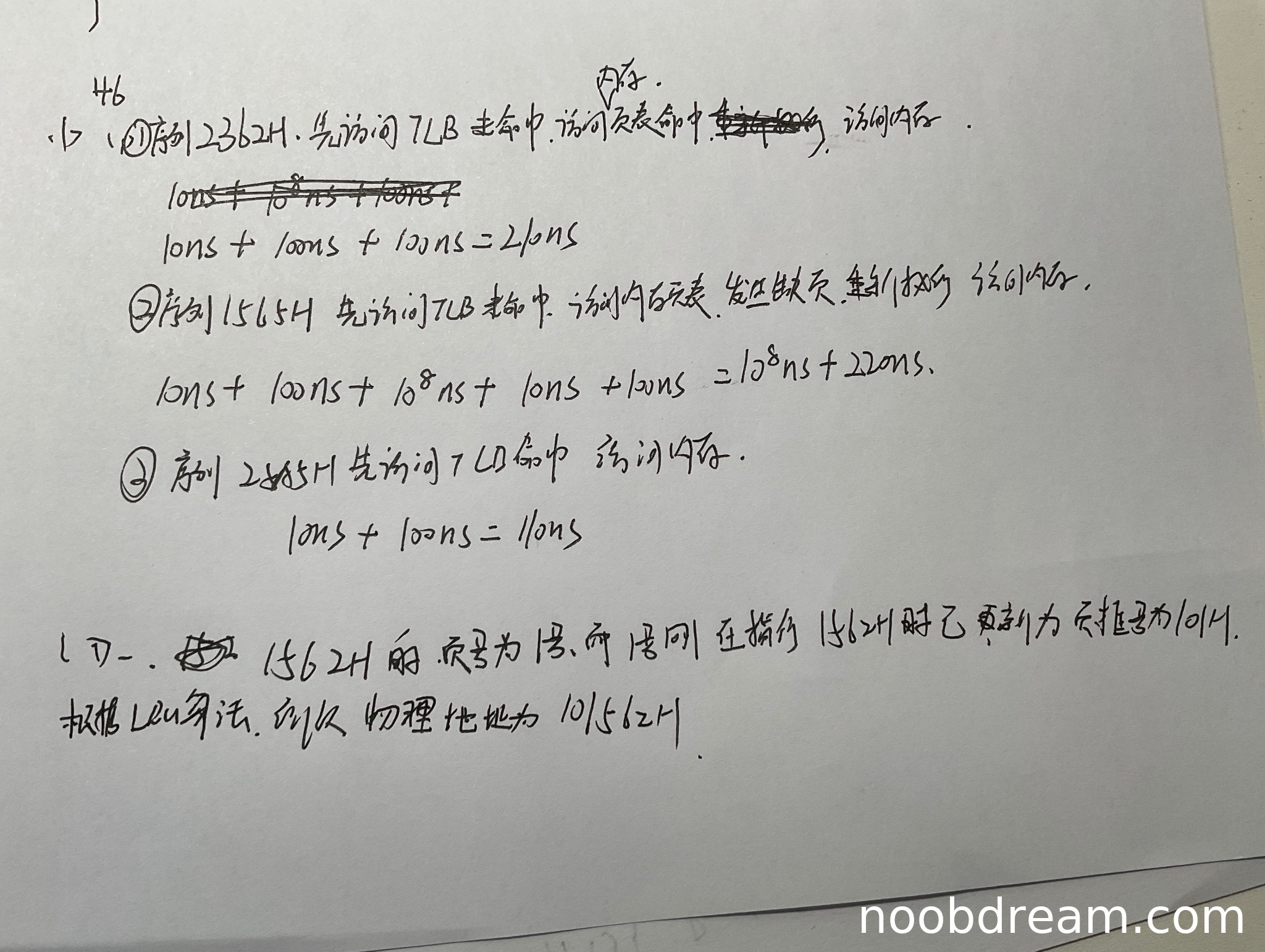 - 对于2362H:第一次识别中错误地包含了10⁸ns(缺页处理时间),但第二次识别正确(10ns+100ns+100ns=210ns)。根据上下文判断,第一次识别中的10⁸ns是误写(可能识别错误),因此不扣分。