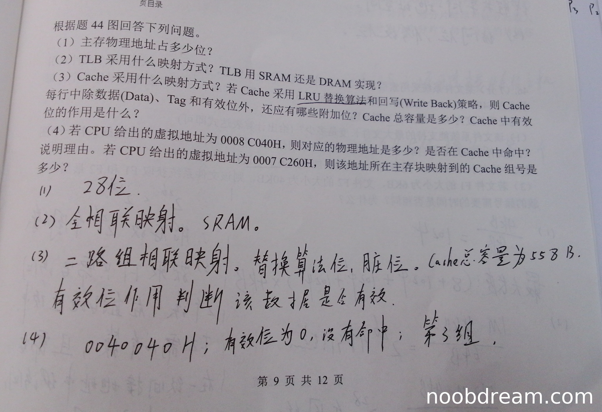 学生答案正确,TLB采用全相联映射,使用SRAM实现。得4分。