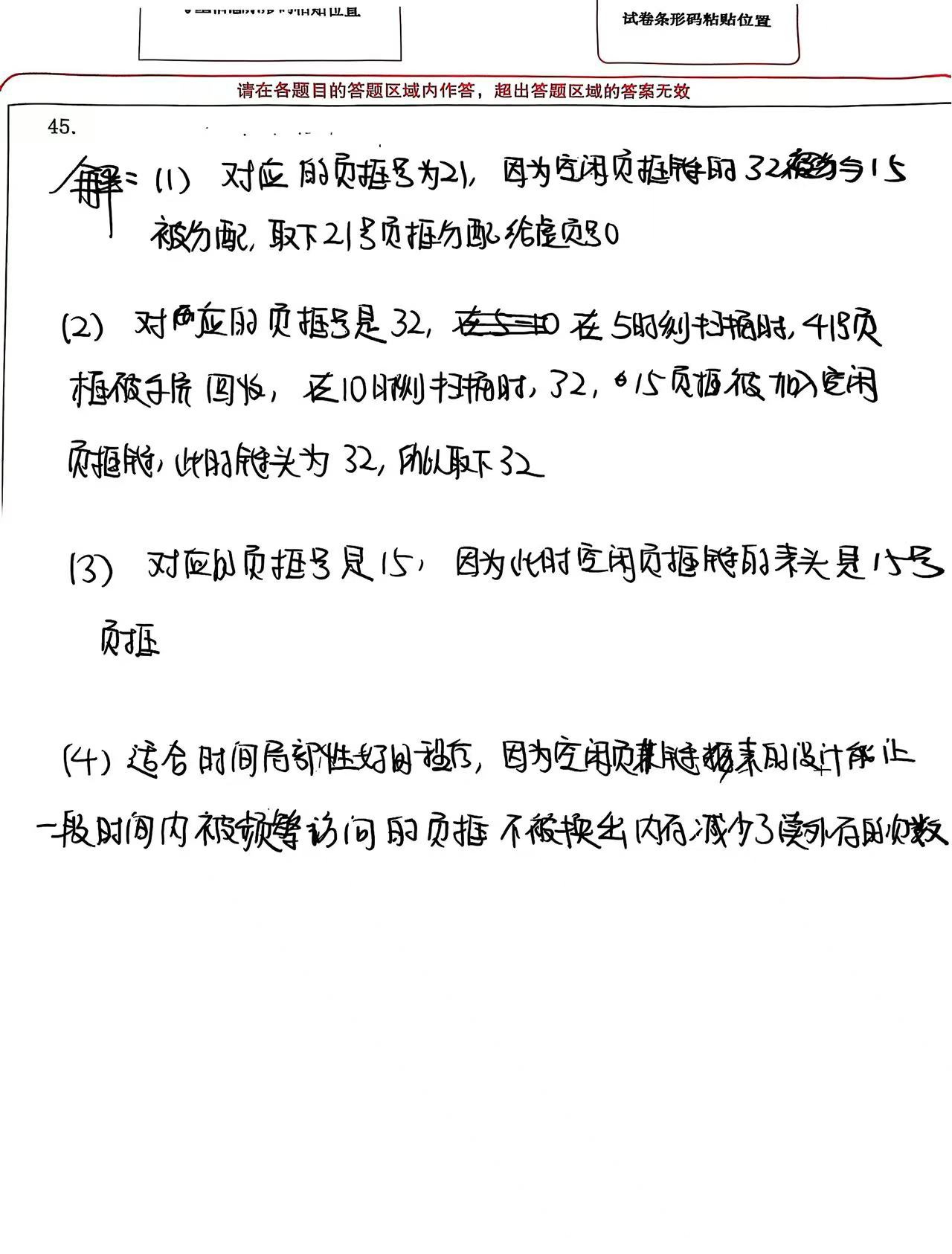 学生两次识别结果均正确回答“适合”,理由正确(时间局部性好则频繁访问的页可能被重新回收利用,减少置换次数)。因此得2分。