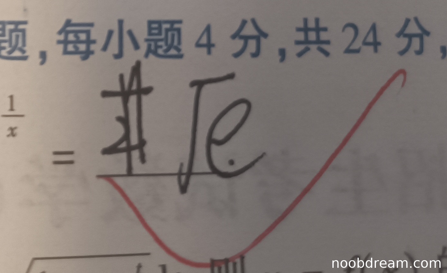 学生作答识别结果为 $\sqrt{e}$,即 $e^{1/2}$,与标准答案 $e^{\frac{1}{2}}$ 完全一致。该极限计算过程涉及指数型未定式的处理(通常取对数后用洛必达法则或泰勒展开),学生答案正确表明其核心逻辑无误。根据评分规则,答案正确且无逻辑错误,因此给满分4分。