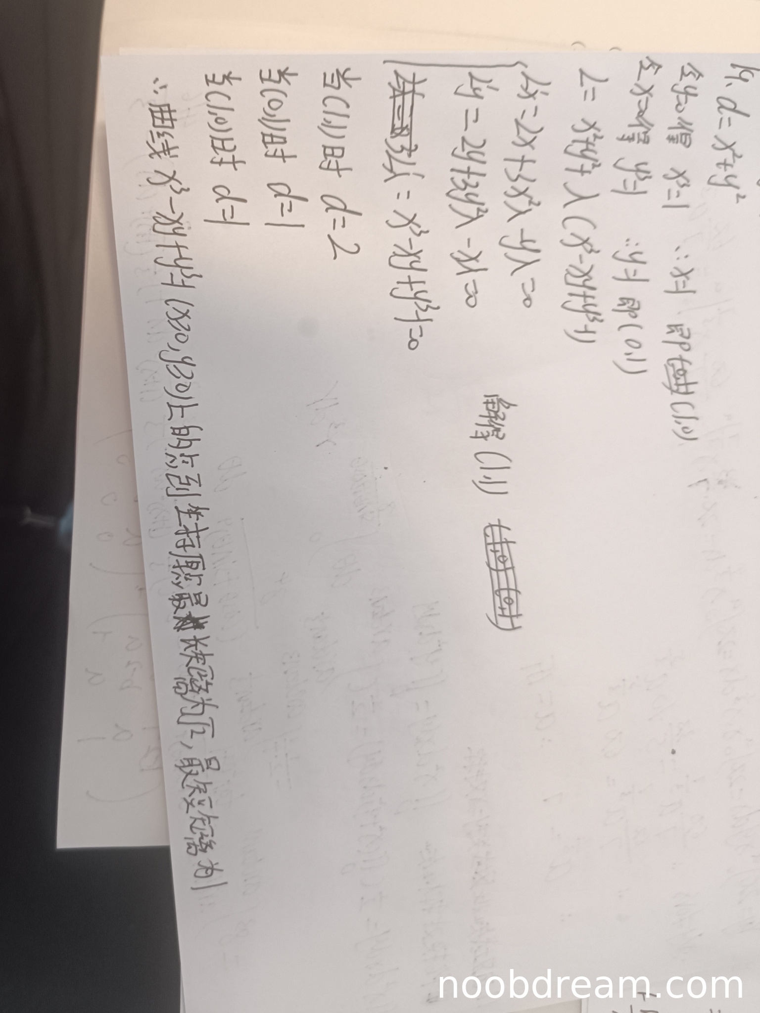 - 求解过程中未使用拉格朗日乘数法,也未考虑约束条件 \(x^3 - xy + y^3 = 1\),而是基于错误条件进行计算。